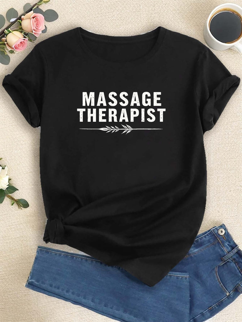 Funny T Shirts For Women Massage Therapist Simple Clean Text On Black Cotton T Shirt, Women T Shirt, Basic Tees Women