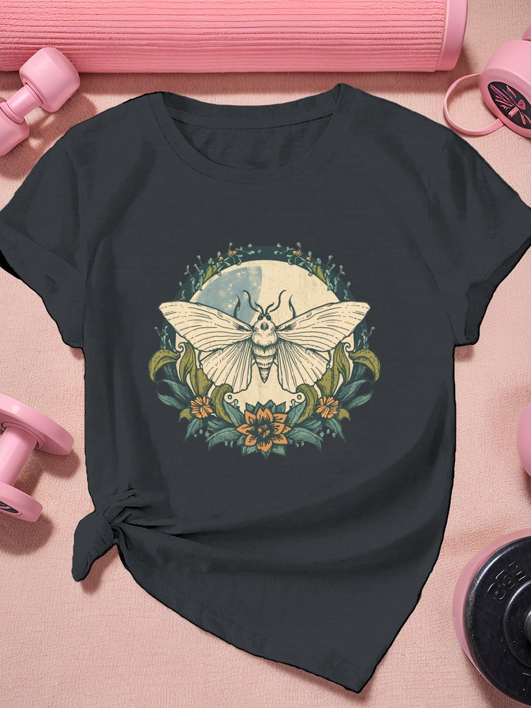 Funny T Shirts For Women Vintage White Moth With Delicate Floral Elements Amid Soft Glow Tshirt, Womens Grinch Shirt, Country Shirts Womens