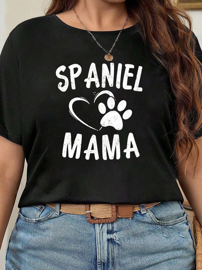 Graphic Shirts For Women Spaniel Mama Paw Print Heart With Playful Loving Spirit Shirt, Womens White Tee, Womens Night Shirts
