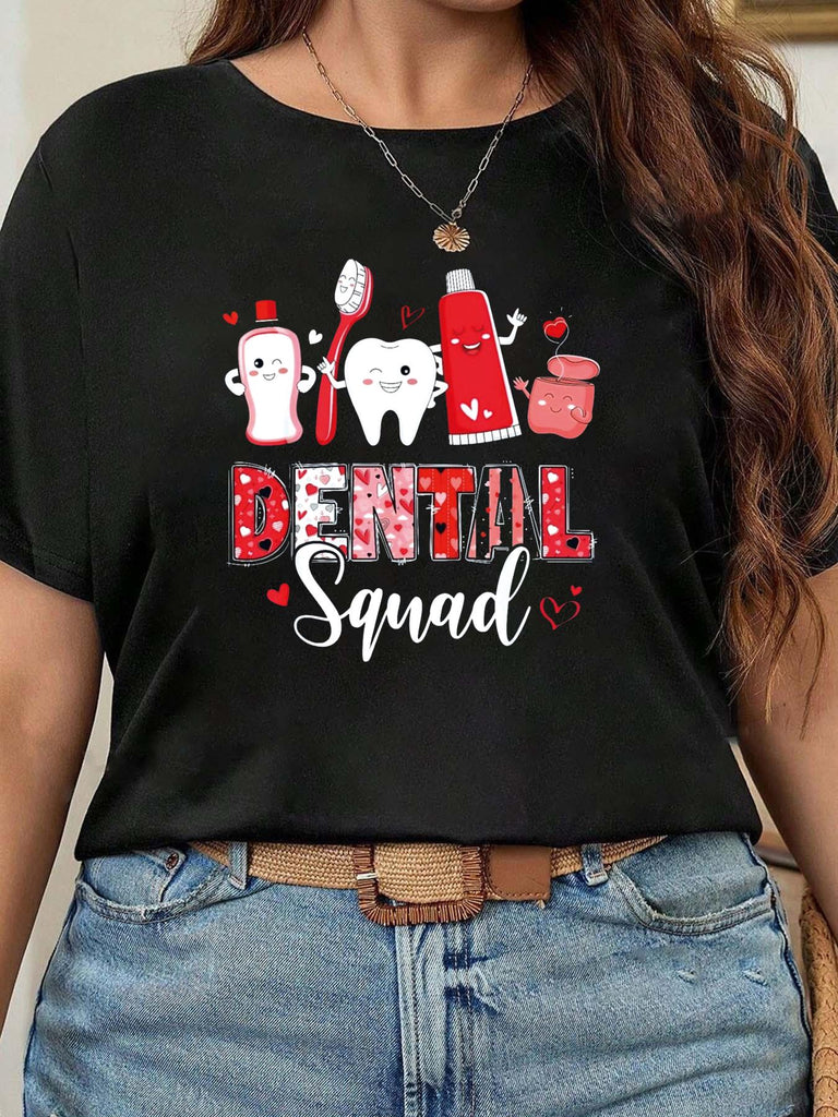 Graphic Shirts For Women Toothbrush Toothpaste And Dental Care Characters With Red Letters Dental Squad T Shirt, Women T Shirt, White Cotton Shirt Women