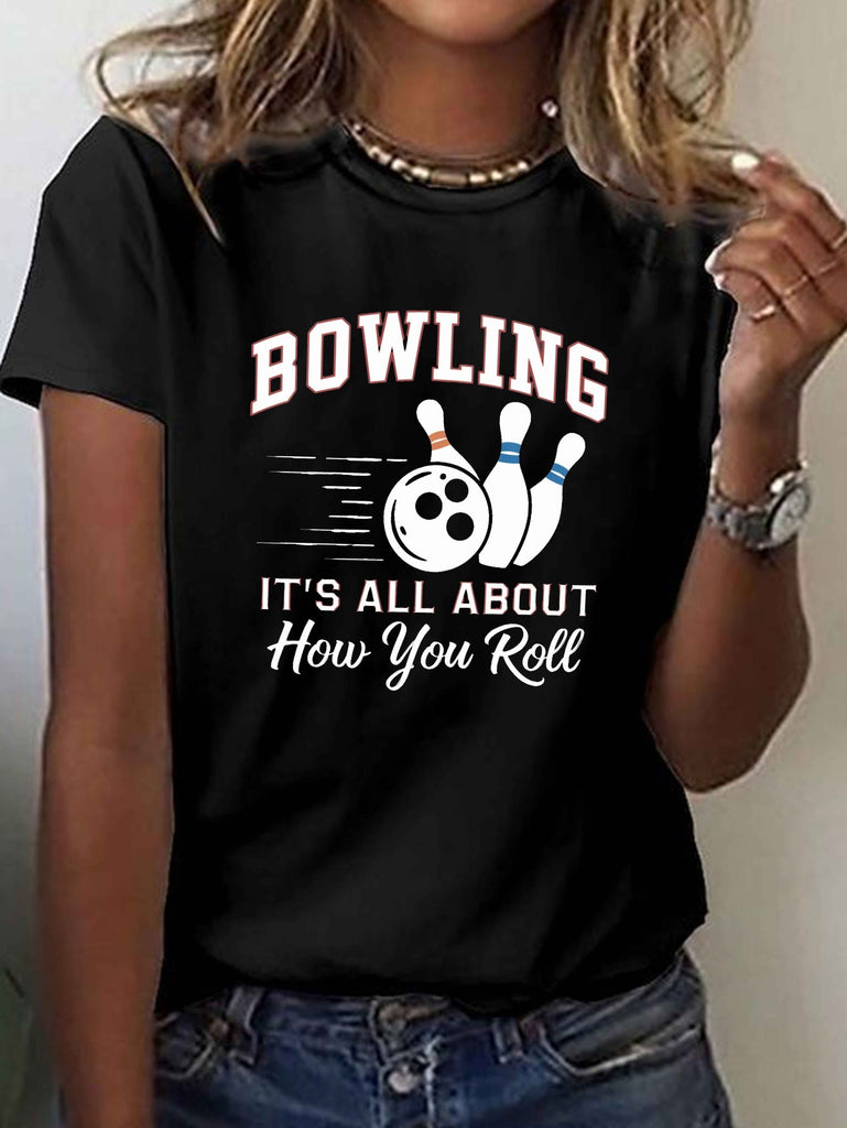 Graphic Tees Women Bowling Its All About How You Roll Pin Ball Striking Sport, Women Tshirts, Womens White Tee