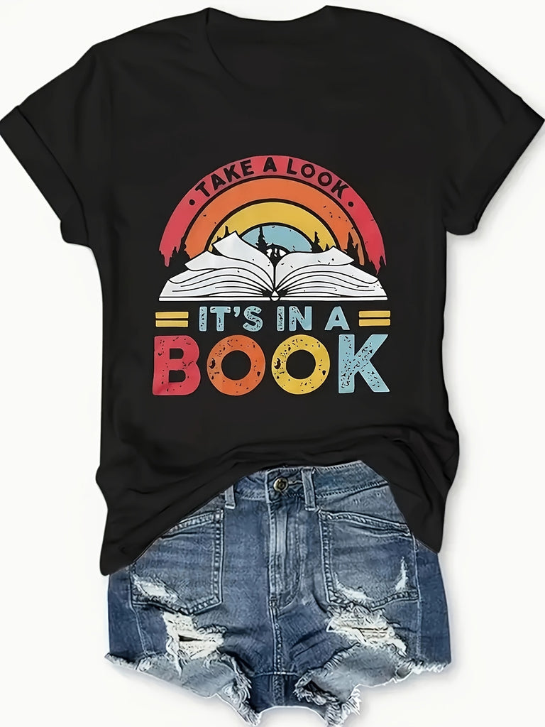Graphic Tees Women Take A Look It Is In A Book Retro Style Book, Graphic Tshirts Women, 100 Cotton T Shirts For Women