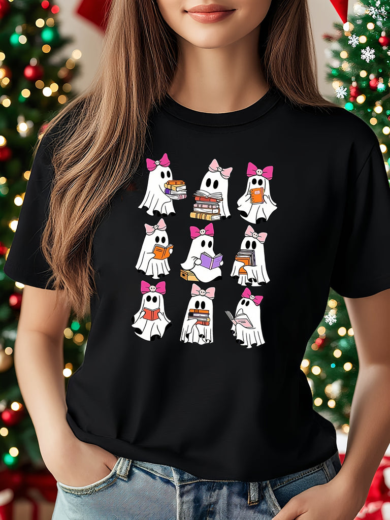 Green Shirt Womens Cute Cartoon Ghosts With Pink Bow And Different Accessories Ghost, Blue Shirt Women, Womens T Shirts