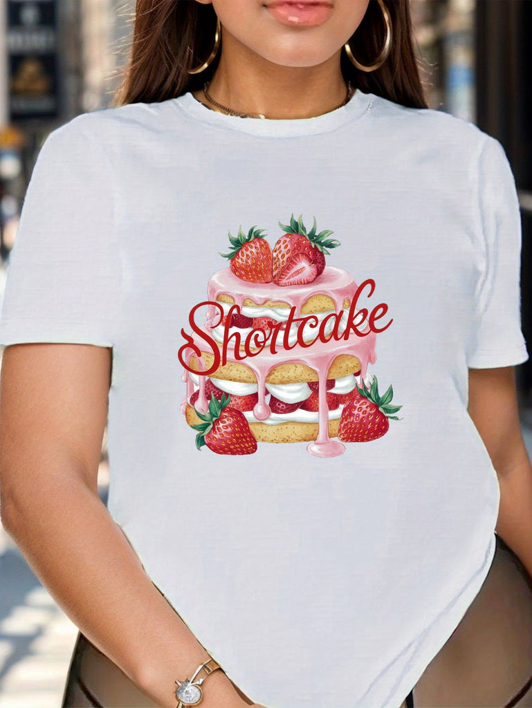 Green Shirt Womens Shortcake Fresh Red Ripe Strawberries With Creamy Sweet Dessert, Cotton Shirts For Women, Graphic Shirts For Women