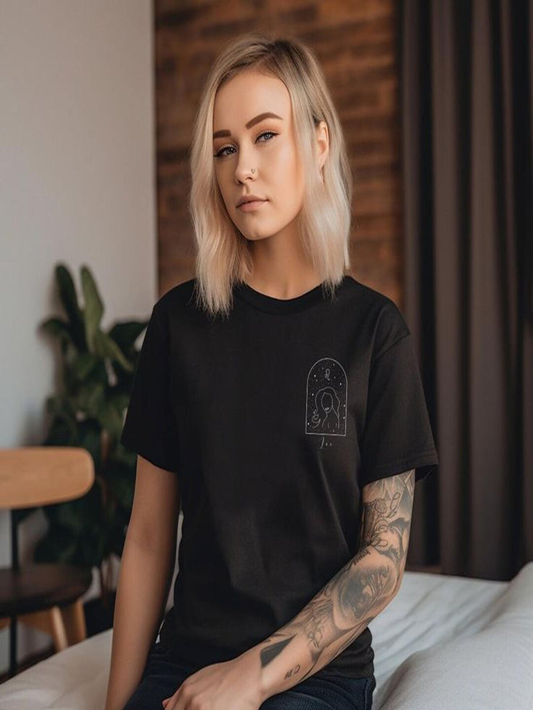 Green Shirt Womens Simple Black T Shirt With Small Minimalist Geometric Design, Funny Shirts For Women, Black T Shirt Women