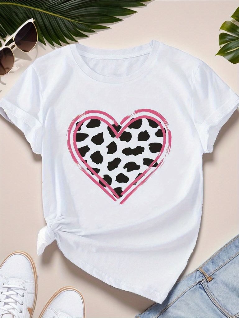 Pink Shirt Womens Fashionable Casual Cotton Tshirt With Spotted Heart Pattern, 100 Cotton T Shirts For Women, Blue Shirt Women