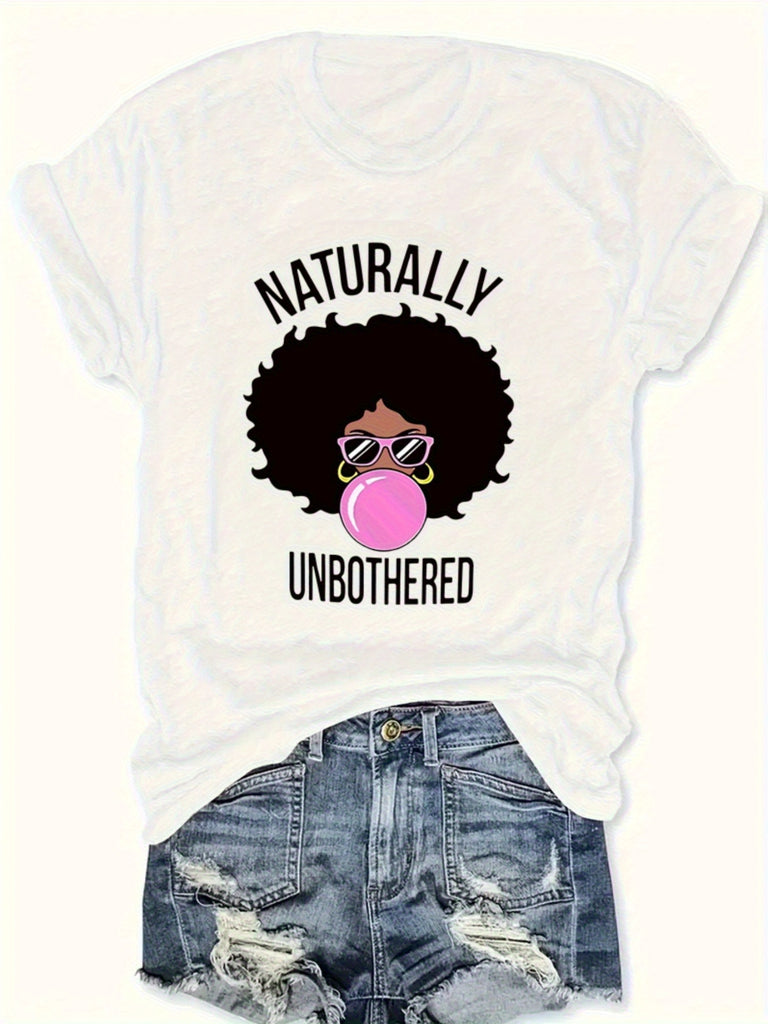 Vintage T Shirts Women Naturally Unbothered Afro Woman Blowing Bubble Gum, Womens Graphic T Shirts, Cute T Shirts For Women