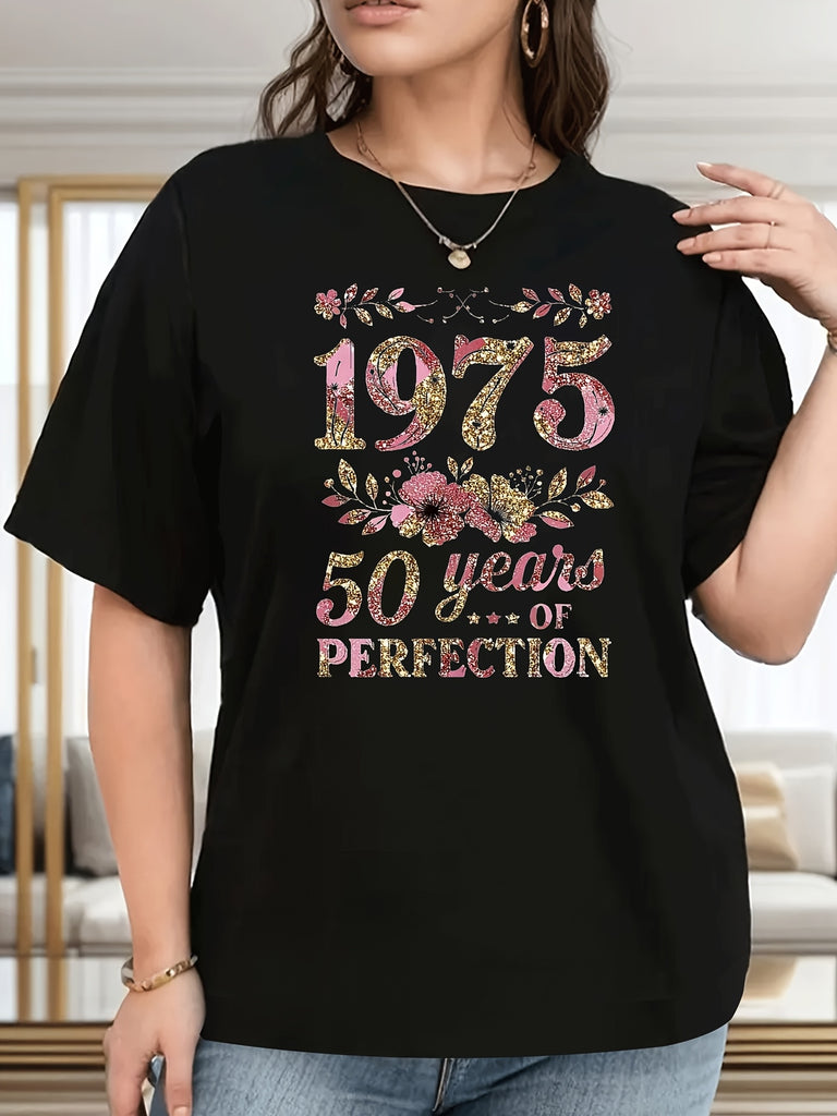 Women Tshirts Years Of Perfection Floral Patterned Printed Black Tshirt, Womens Graphic Tees Vintage, Womens T Shirts